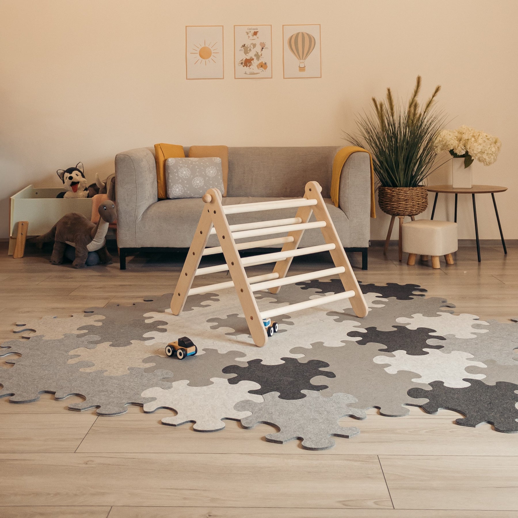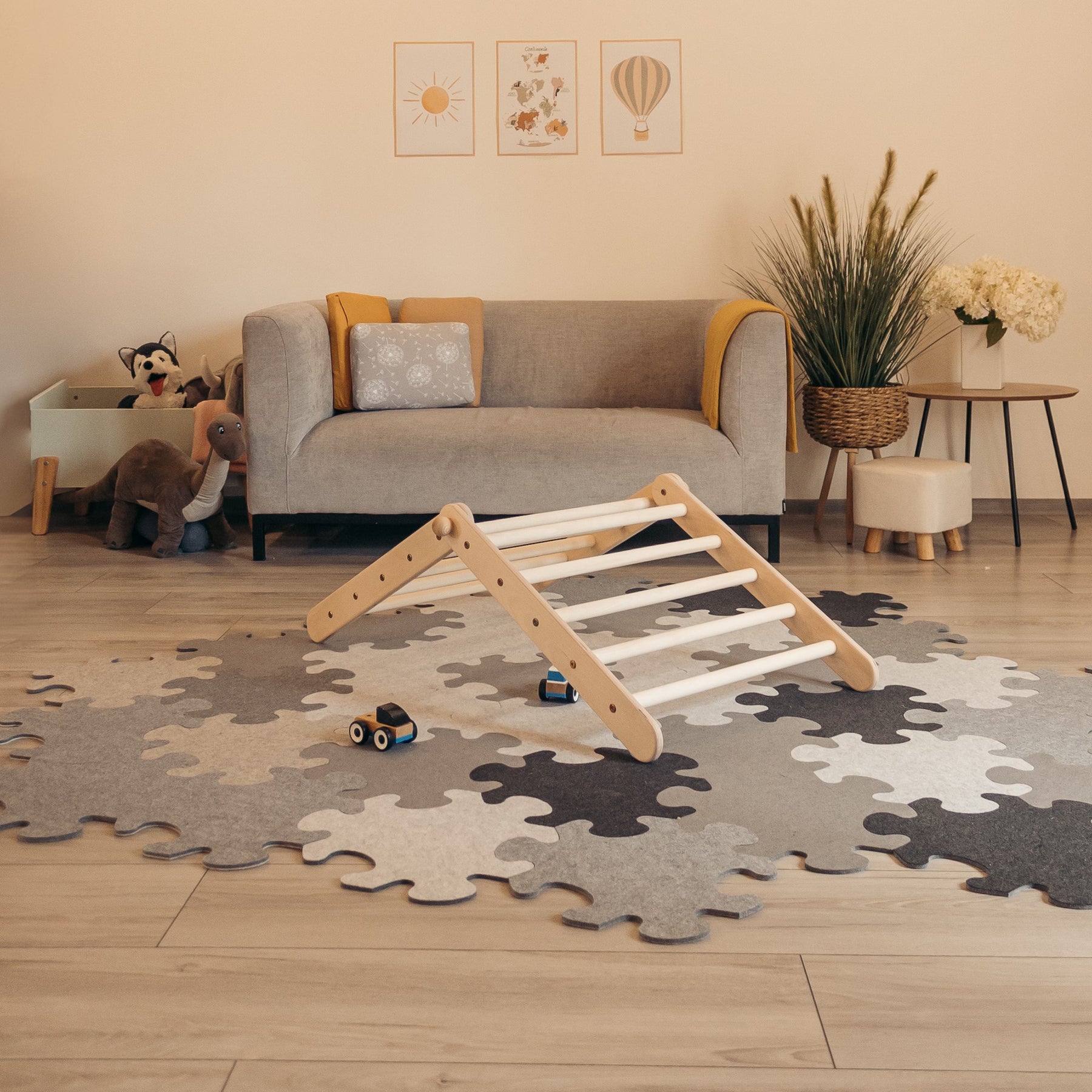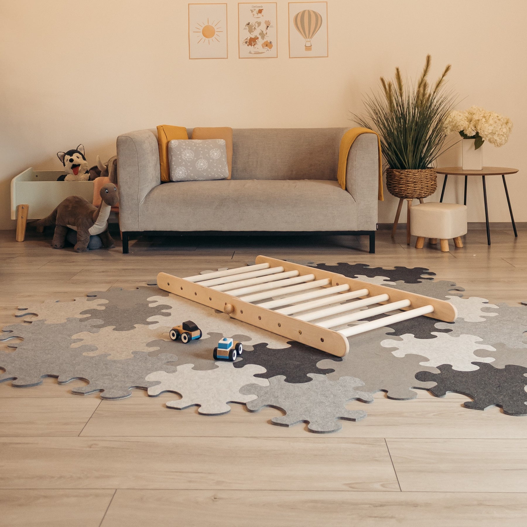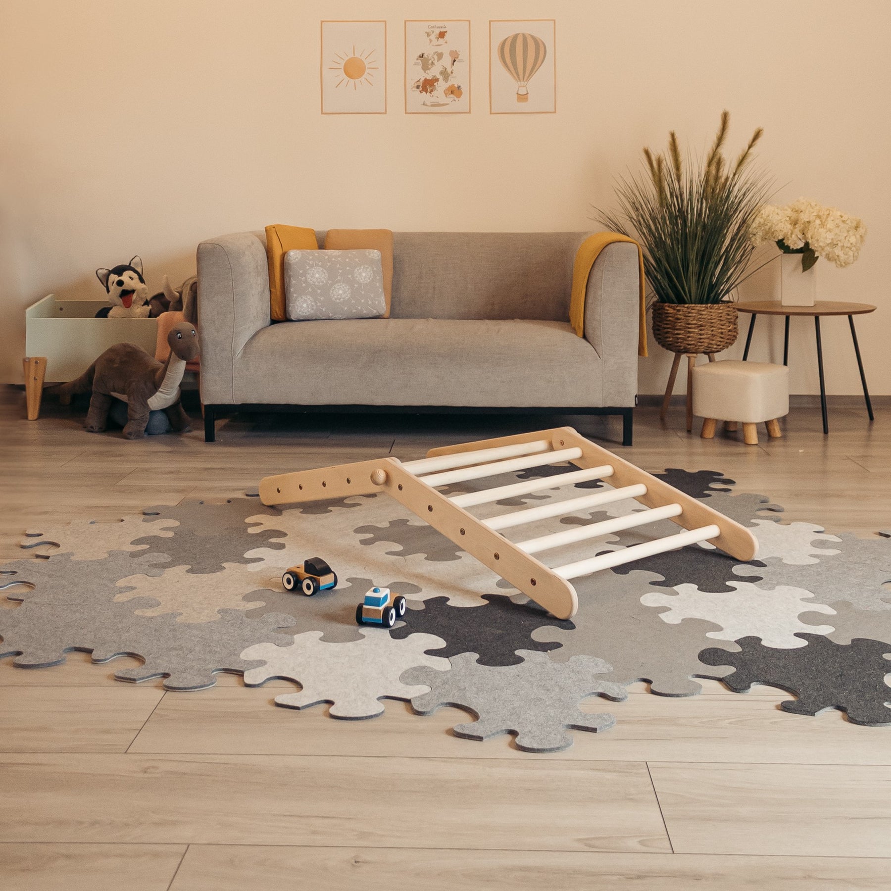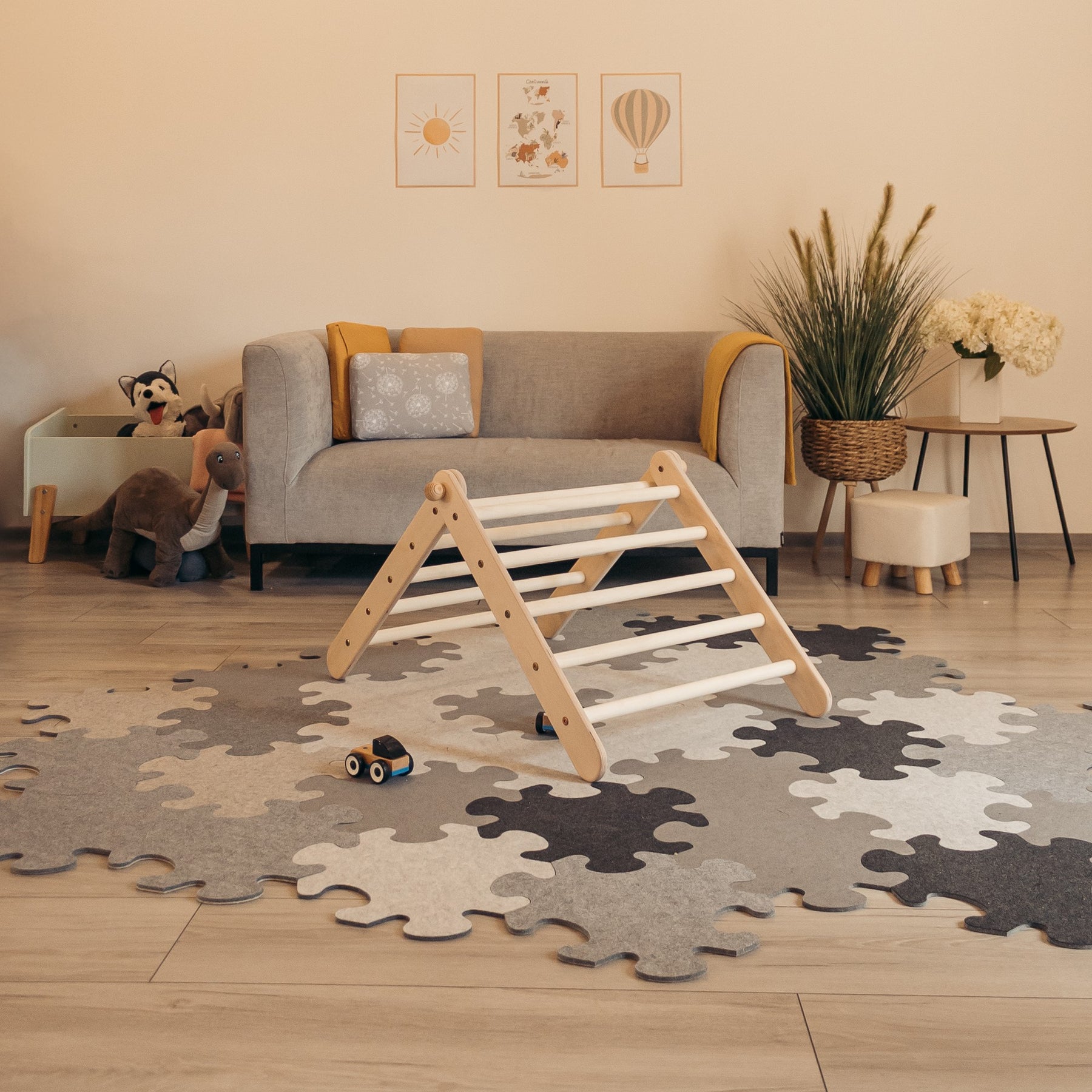 Das Verstellbares Kletterdreieck ist ein besonders flexibles Klettergerät, das sich in fünf Stufen von komplett flach (180°) bis 60 cm Höhe verstellen lässt.
