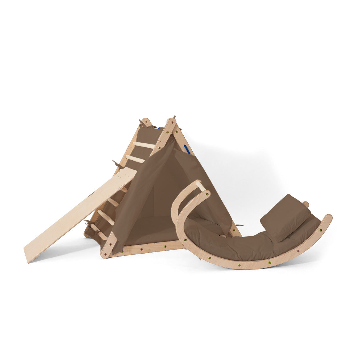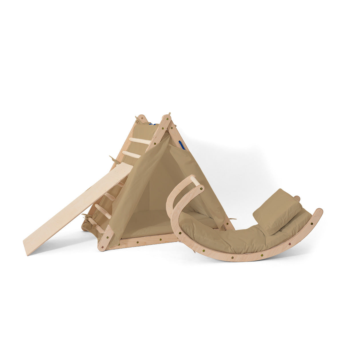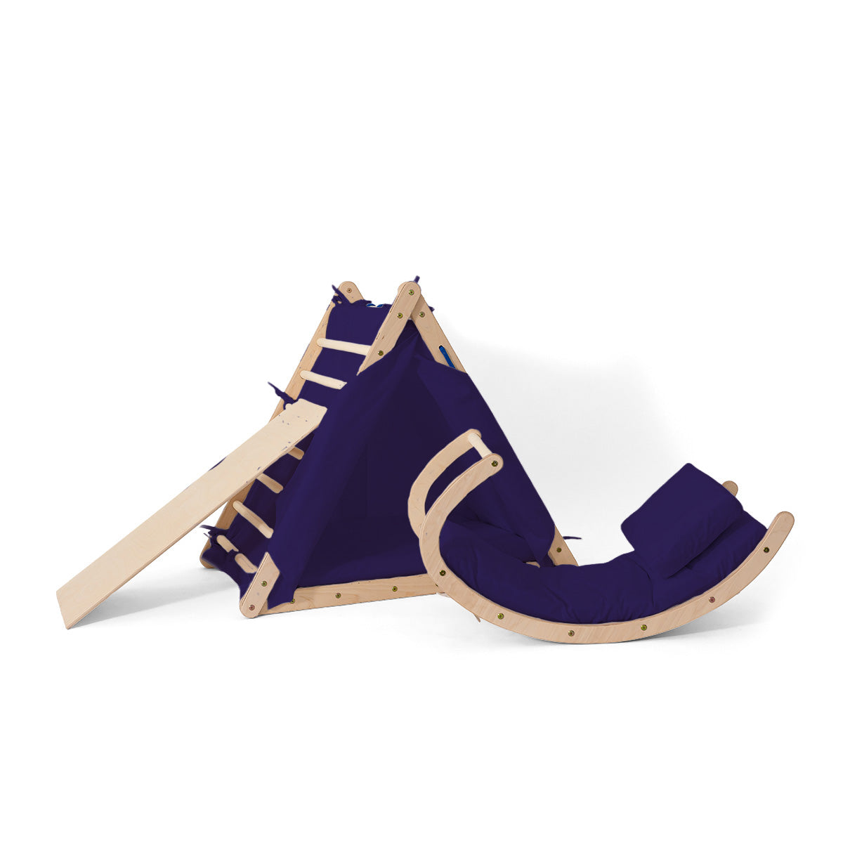 • Das Zelt verwandelt das Kletterdreieck in ein Spielhaus.