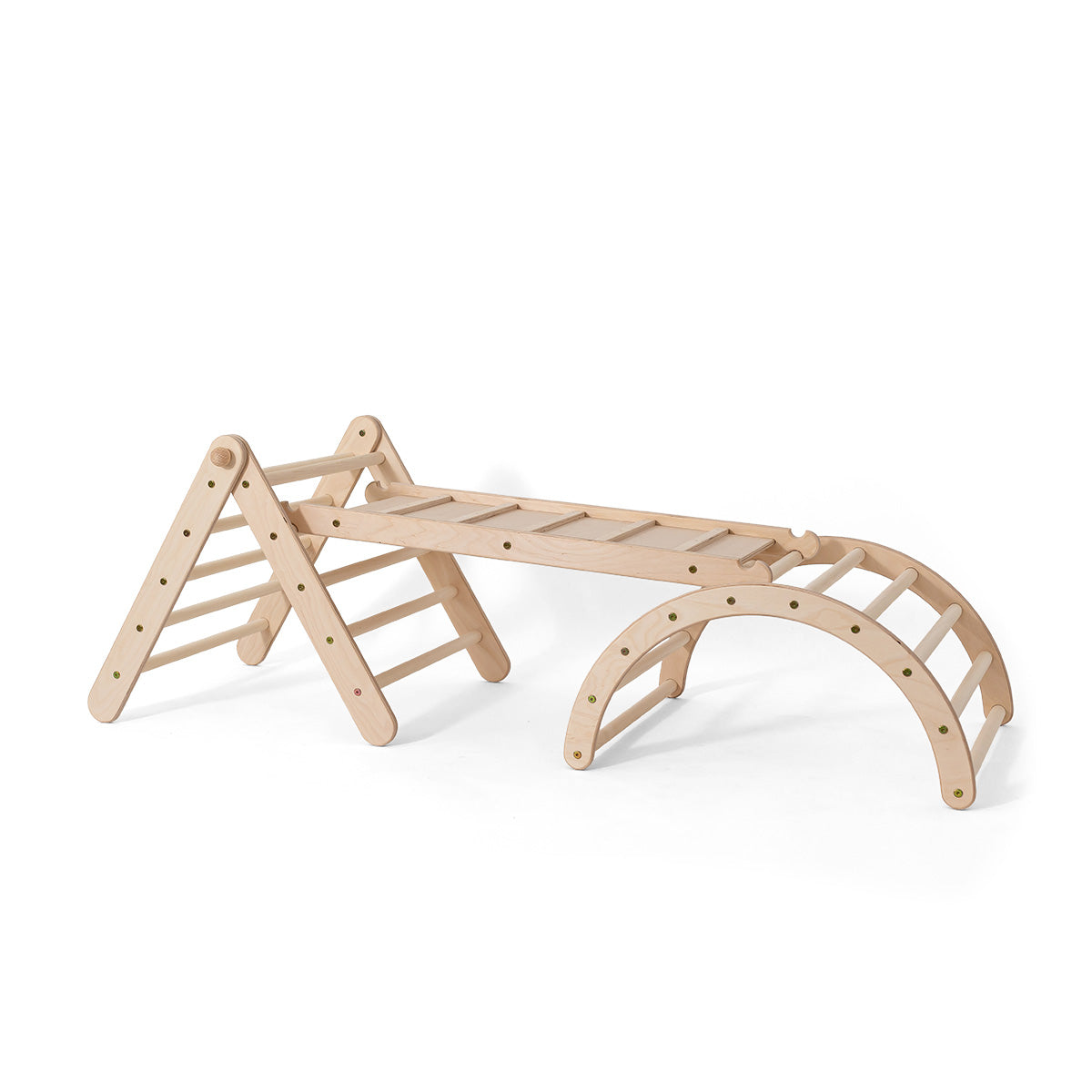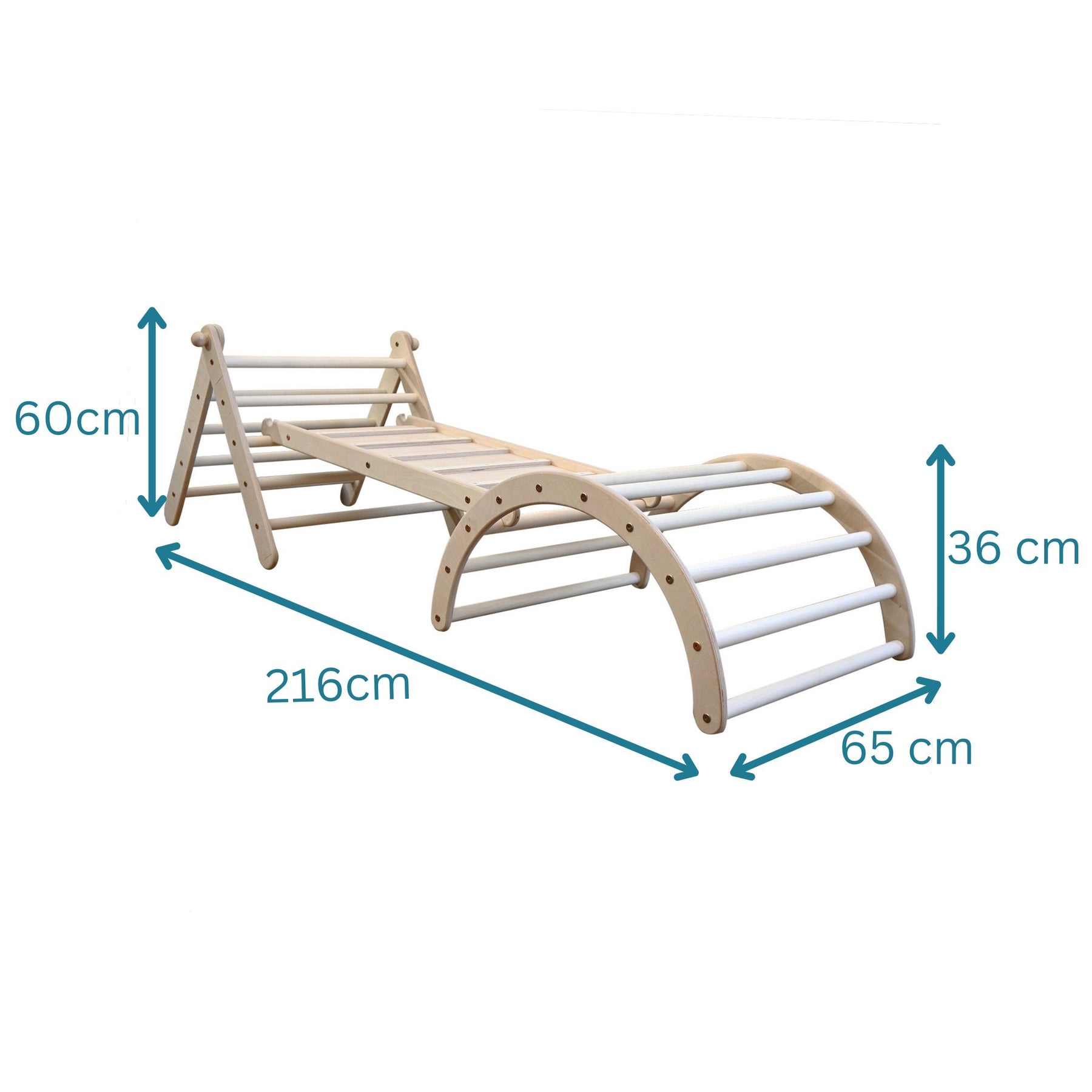 Verstellbares Kletterset | Verstellbares Kletterdreieck + zweiseitiger Hühnerleiter-Rutsche + Bogen in Größe S